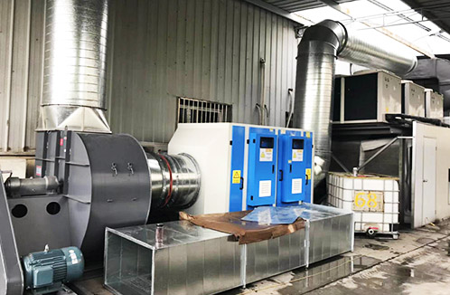 噴漆廢氣產生于弓箭涂裝的噴漆工作臺,高壓空氣噴射出的油漆大部分留在工件上,其他的隨著廢氣帶出,形成漆霧粉塵。這些粉塵含量不高,粒徑較小,箱體外部的漆霧在風機的吸力下進入漆霧凈化處理箱,氣液分離器進行氣水分離,分離后向箱內行走,在行走的過程中,遇到多級過濾板,漆霧與過濾板進行完全飽和接觸,顆粒狀塵霧被過濾板吸附,余下的干凈尾氣通過網狀過濾器過濾后,再進入活性炭吸附凈化箱,活性炭凈化箱是利用高效吸附材料來凈化空氣的,活性炭凈化箱分進風、活性炭過濾段和出風段租出,有機廢氣從進風口進入箱體,凈化后的達標尾氣在通風機吸力下排向大氣。